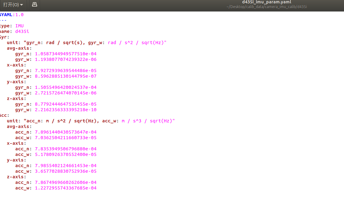 标定结束后,标定结果会保存在我们创建的d435i目录下,标定信息参考如下: