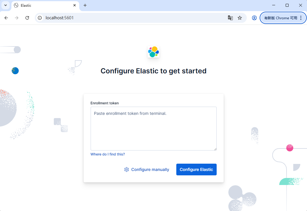 5,打开浏览器访问地址 http://localhost:5601 ,就能看到你部署的 Elasticsearch 界面,输入你在 Elasticsearch 启动时看到的临时密码即可进入 Kibana 主界面。