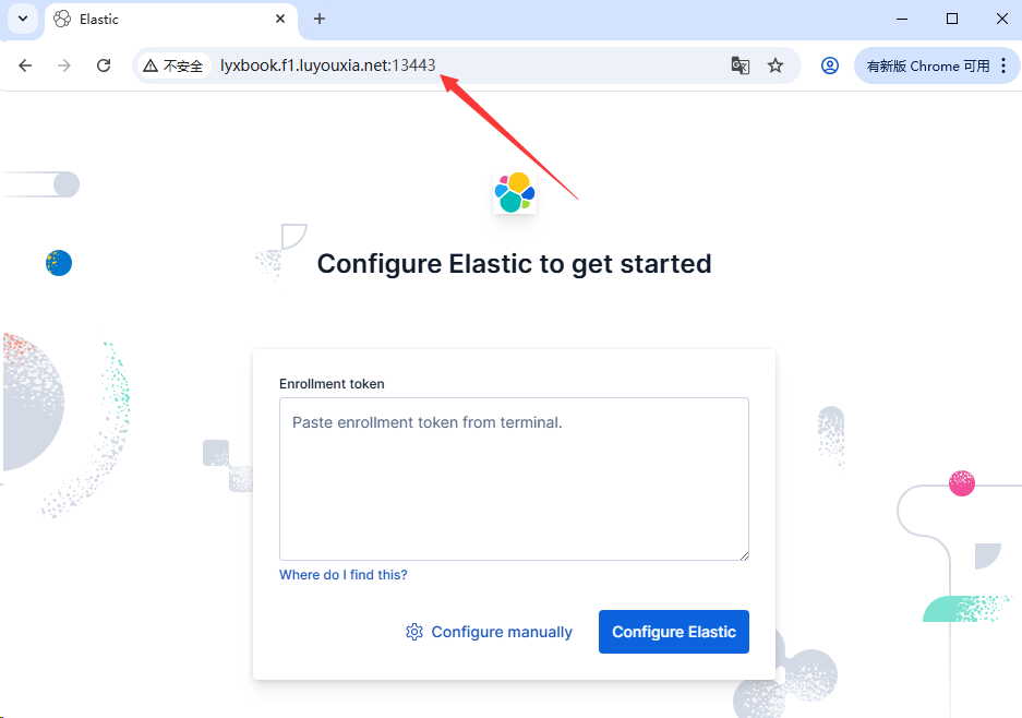 6,在外网电脑上,打开浏览器,在地址栏输入从路由侠生成的外网地址,就可以看到内网部署的 Elastic Stack 界面了。