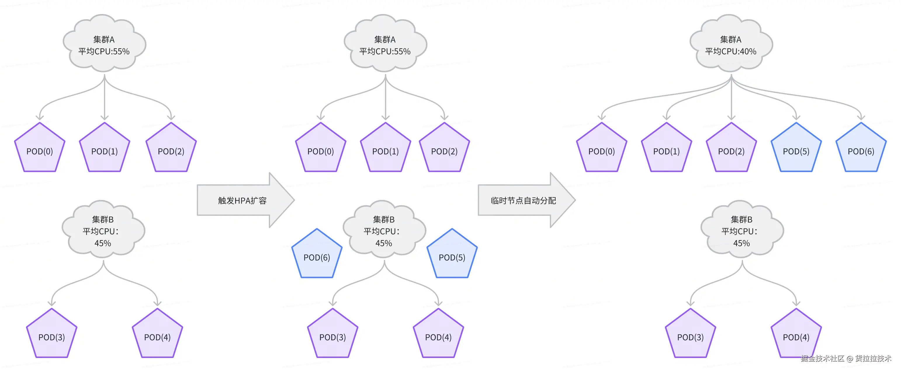 - 新节点注册:扩容后启动的新 Pod 会向集群注册心跳,表明其就绪状态。
