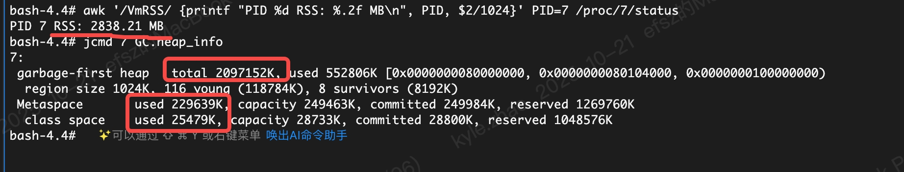 JVM各部分占用内存 堆2G、元空间230M、压缩类26M