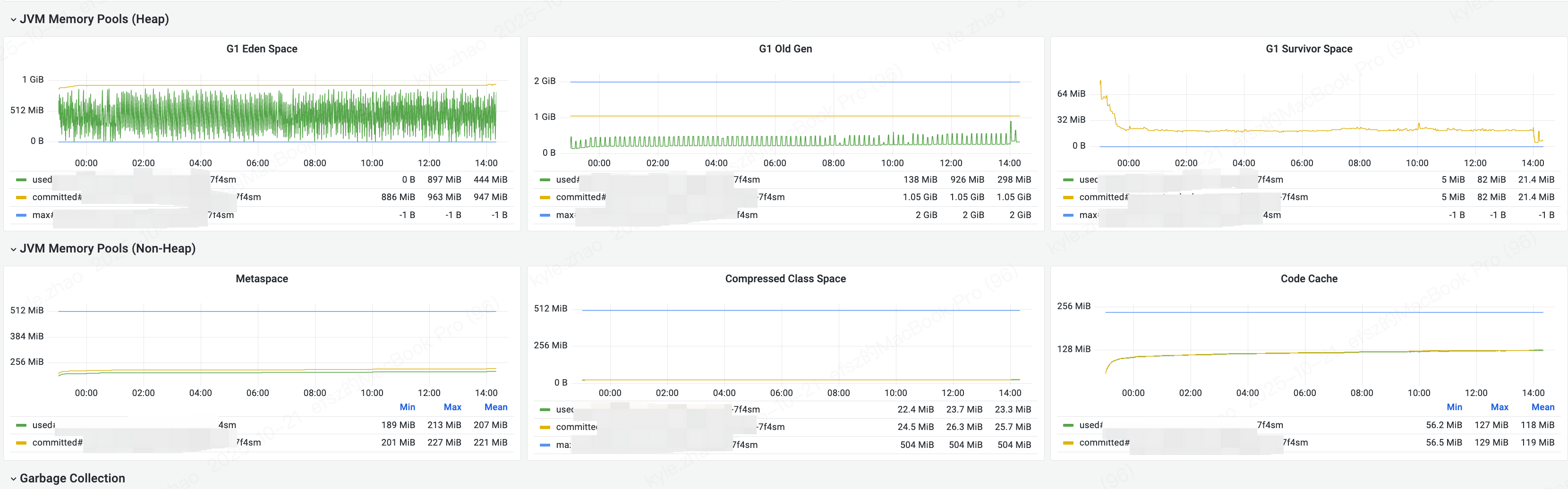堆内存以及非堆(元数据、类信息、机器码的占用都是较为稳定的)
