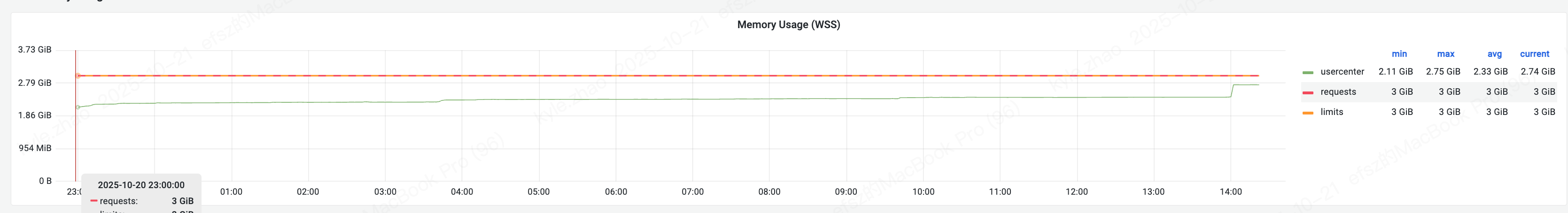 发现其服务使用的内存是稳步上升的并在14点左右达到峰值