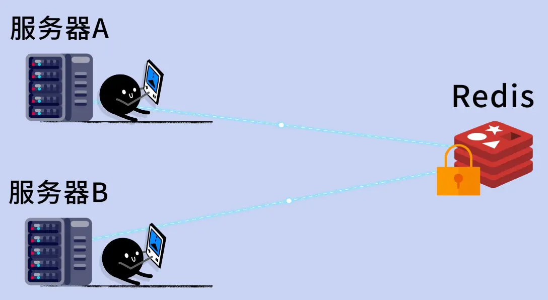 类似的,分布式锁也可以利用 Redis 实现,让多个服务器都从 Redis 去获取锁资源,谁先拿到锁,谁就能操作,其他人排队等待。