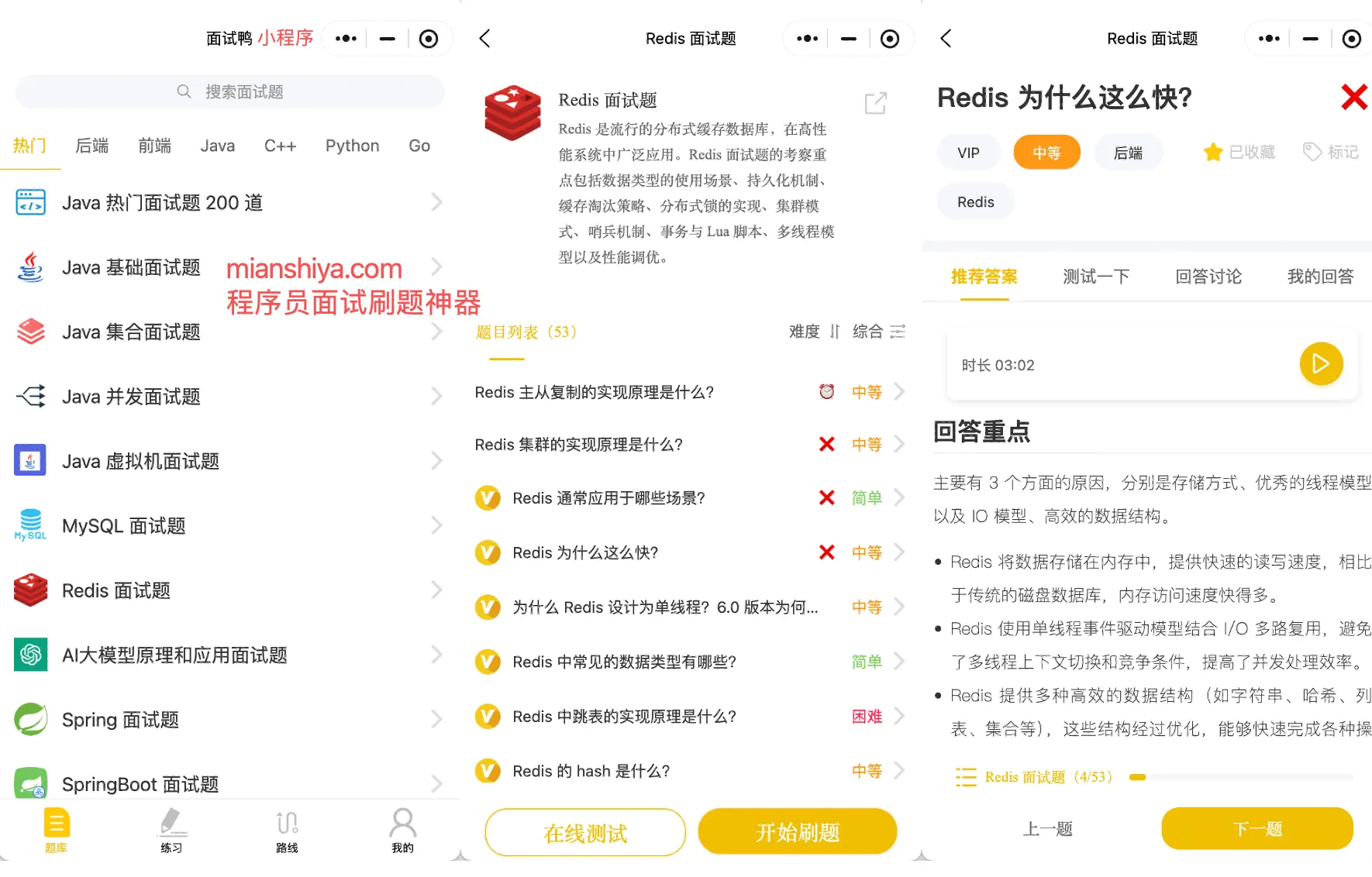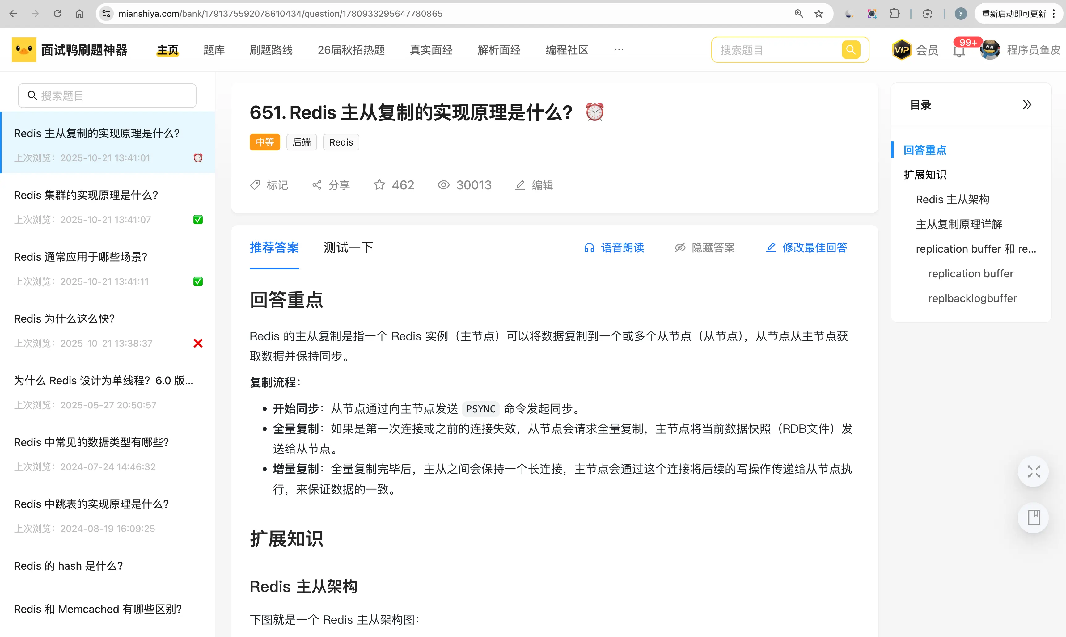 鱼皮:对!这就是 Redis 设计的巧妙之处。从这些问题出发,去阅读相关的文章,或者直接像阿坤说的刷一刷 Redis 面试题,就能快速学会很多核心知识点。