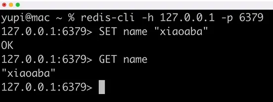 连上之后,咱们试试最基础的操作,利用 SET 命令保存一个键值对: