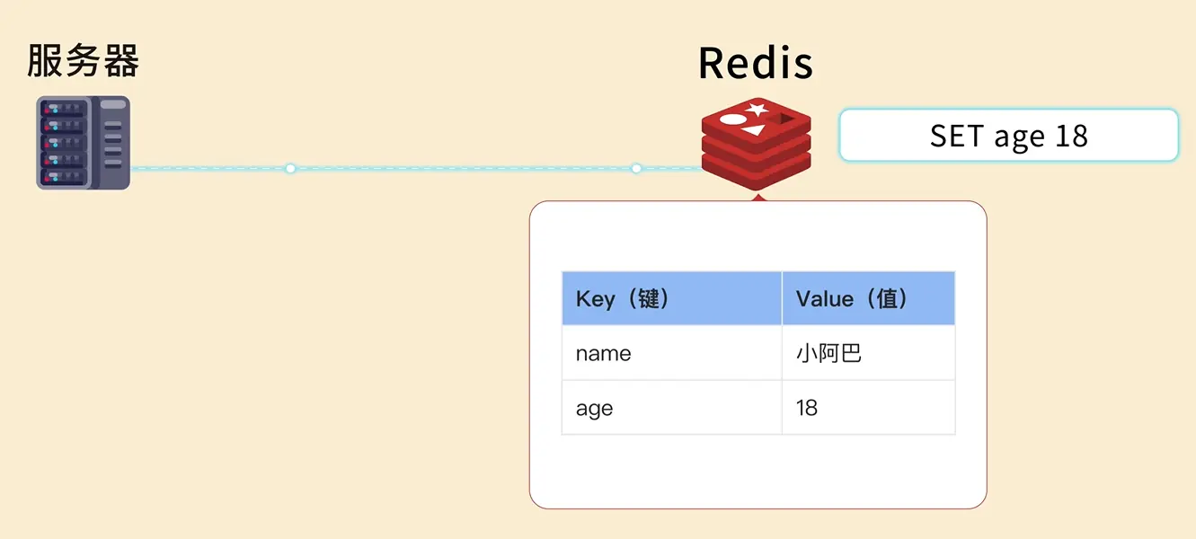 鱼皮:你可以把 Redis 当成一个数据库,服务器可以通过网络远程操作它写入和读取数据。K/V 就是 Key-Value 键值对,数据就像字典一样保存。
