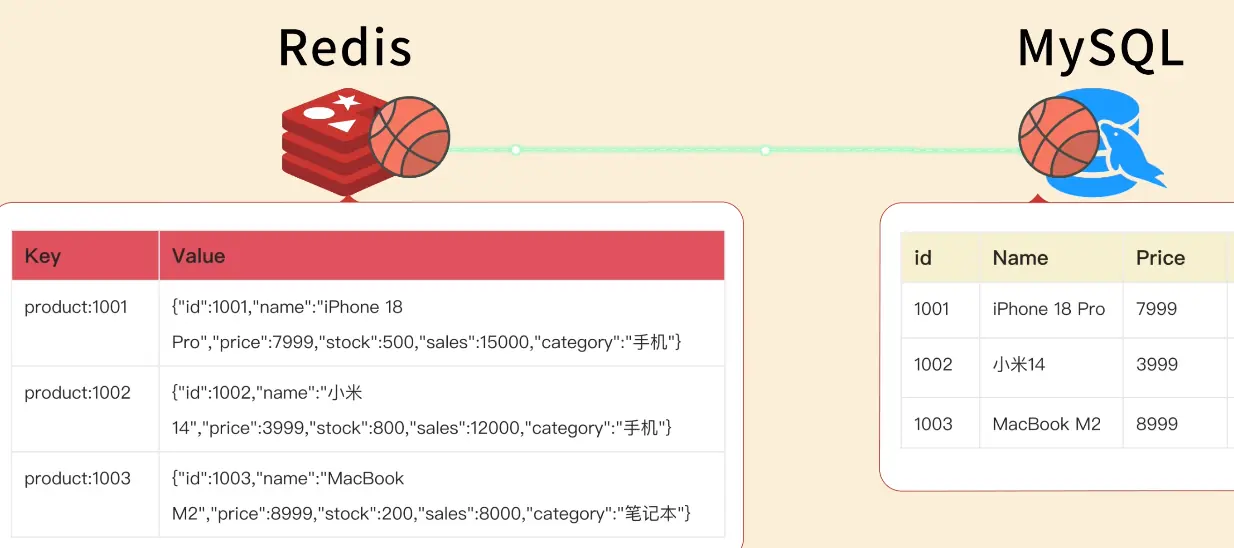 你实现了经典的缓存逻辑:第一次查询时,先从 Redis 中查找,如果没有找到,再从 MySQL 数据库中查询,然后将结果存入 Redis 中,并设置过期时间。后续相同的查询就能直接从 Redis 返回结果。