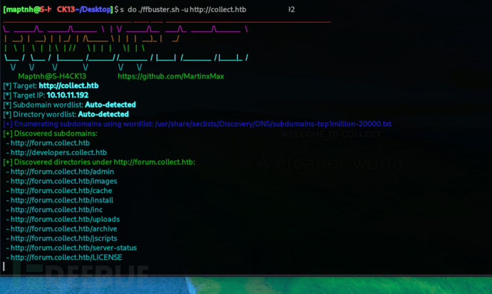 $ $ sudo ./ffbuster.sh -u http://collect.htb -i 10.10.11.192