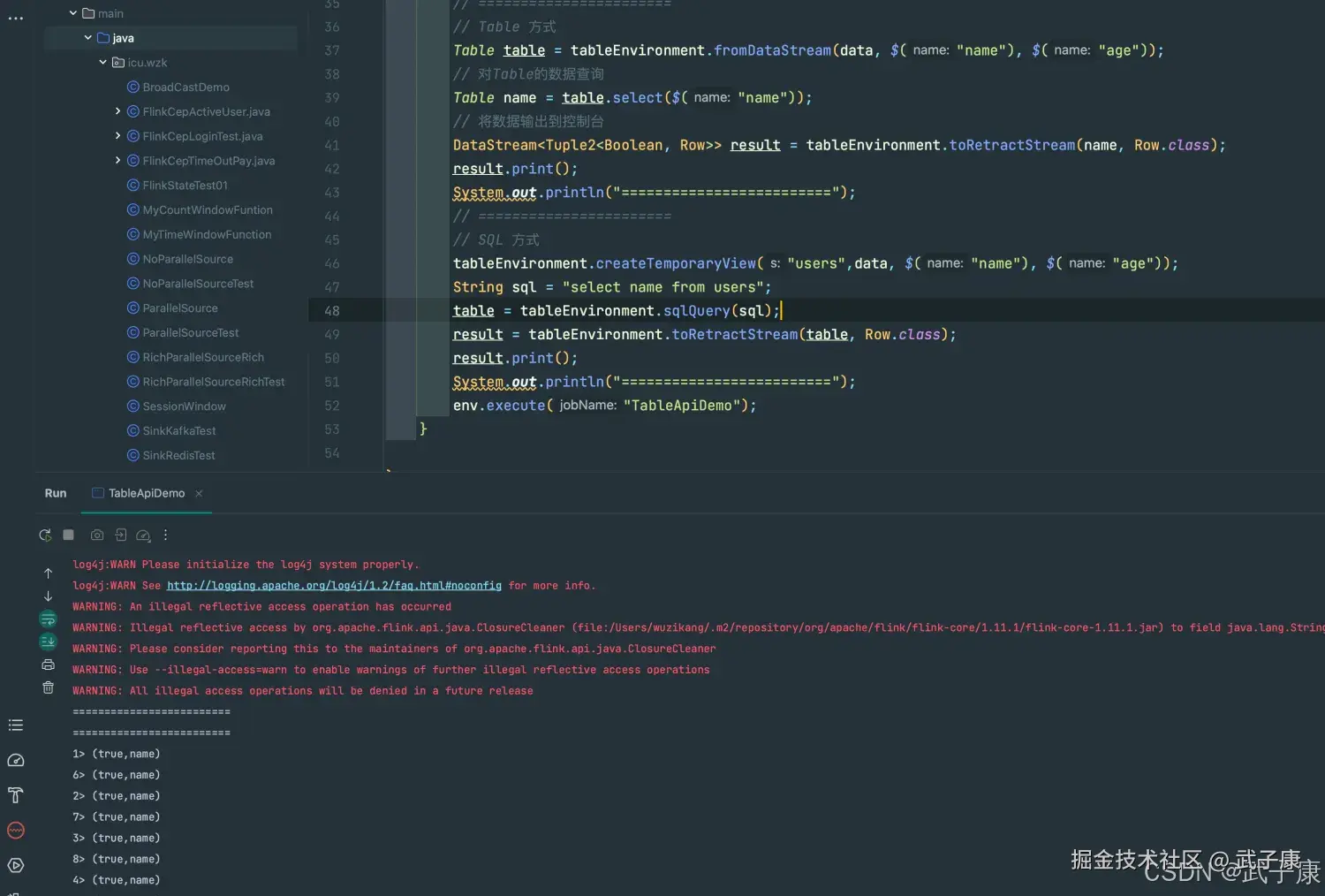 Table namesBySql = tEnv.sqlQuery("SELECT name FROM users");