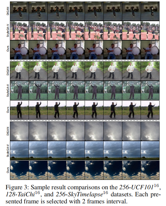 - 帧内细节更清晰(如 UCF-101 中的人物动作、Sky Time-lapse 中的云层纹理);