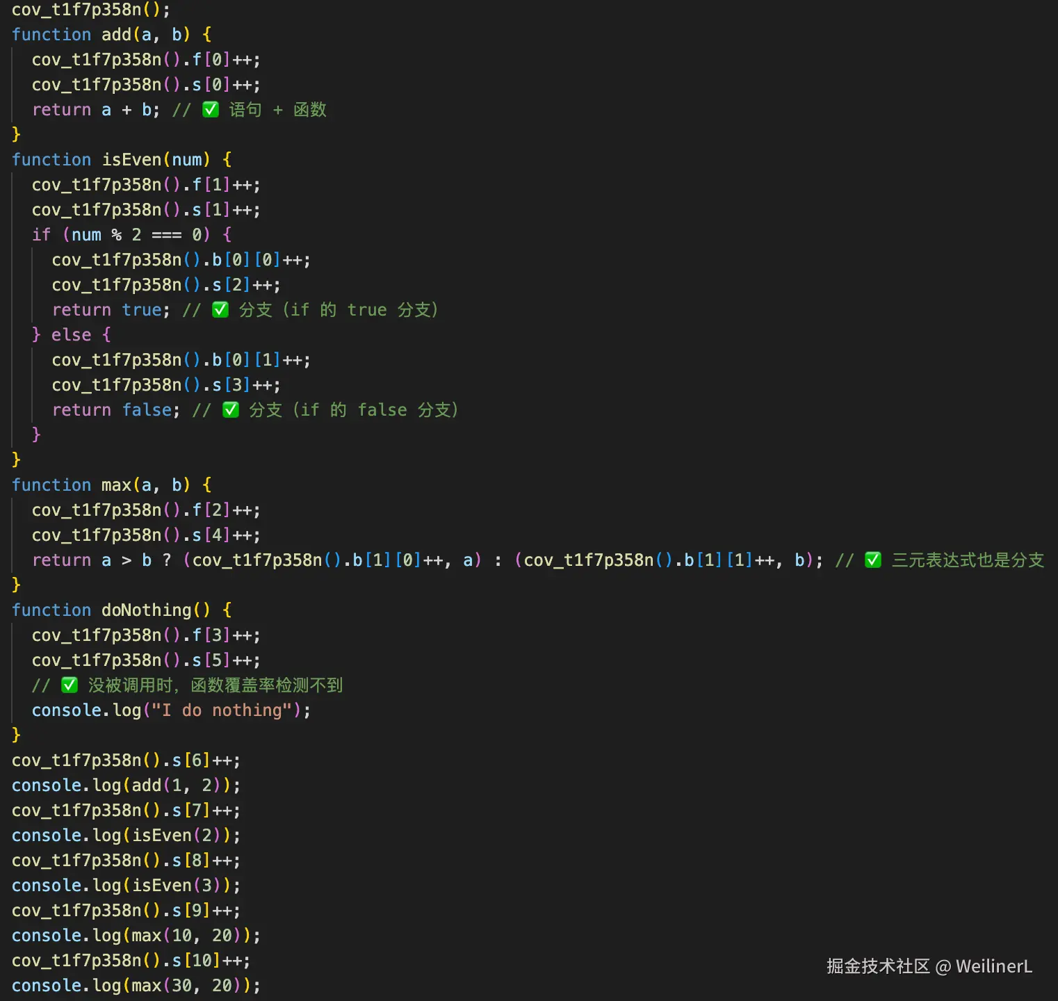 代码覆盖率是指代码的执行情况统计,帮助我们了解那些代码已经被测试覆盖,哪些还没有。它是衡量测试质量的重要手段。通常分为增量覆盖率和全量覆盖率。目前业界比较成熟的方案是使用babel-plugin-istanbul这个工具来进行插桩统计,假如你有以下代码: