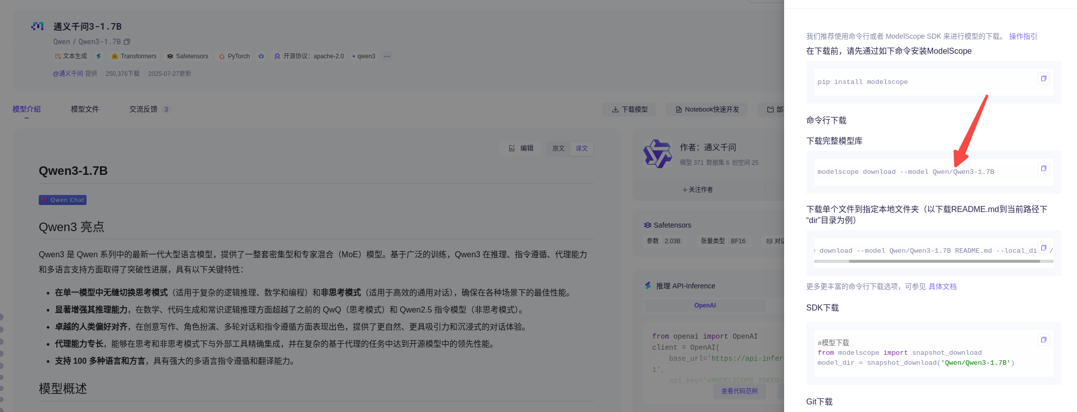 modelscope download --model Qwen/Qwen3-1.7B --local_dir