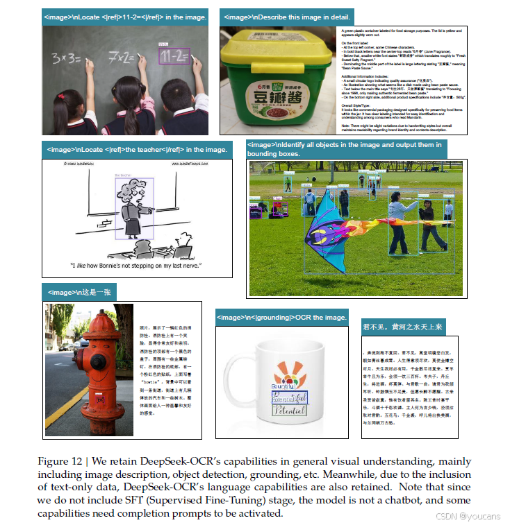 我们还为DeepSeek-OCR提供了一定程度的通用图像理解能力。相关的可视化结果如图12所示。