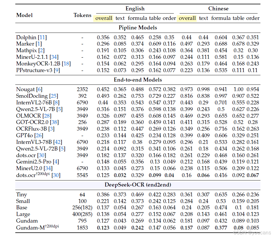 DeepSeek-OCR 可以在享受最少视觉标记的数量的同时,实现端到端模型中的最佳性能。