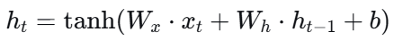 h = np.tanh(np.dot(Wx,x) + np.dot(Wh,h) + b)