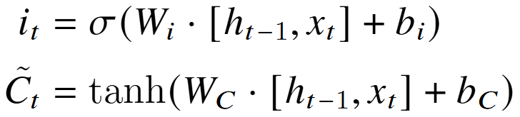 新细胞状态C:遗忘门 f 和输入门 i;对之前与候选 细胞状态进行加权。