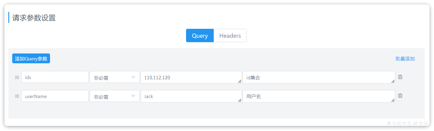 然后是当前接口的请求参数设置: