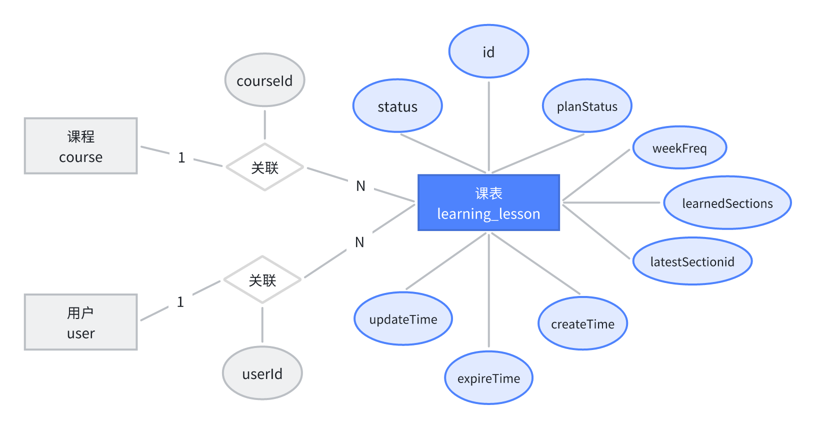 可以结合原型图中包含的信息来画一个ER图,以我的课表举例: