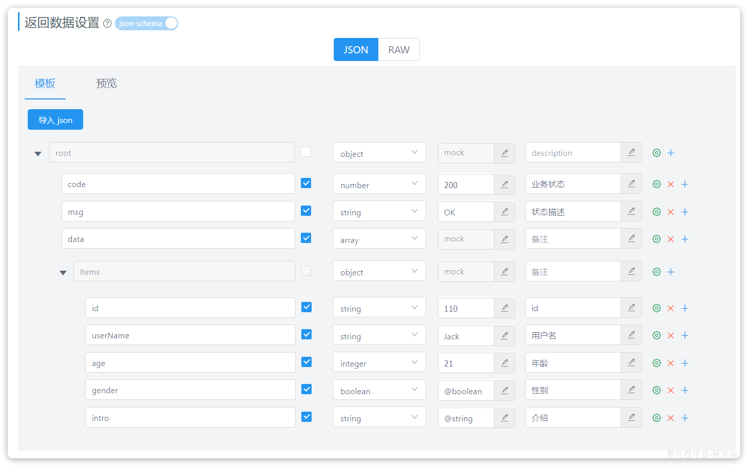 - 返回数据设置