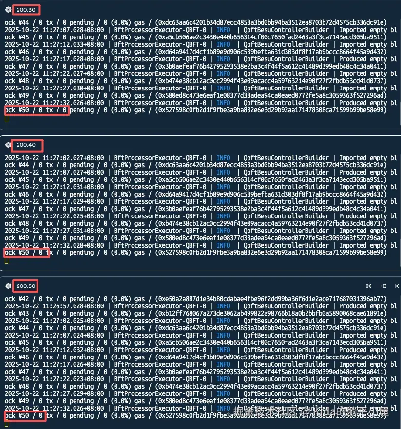 OK,所有验证者节点都启动且能够完美地同步生成区块。