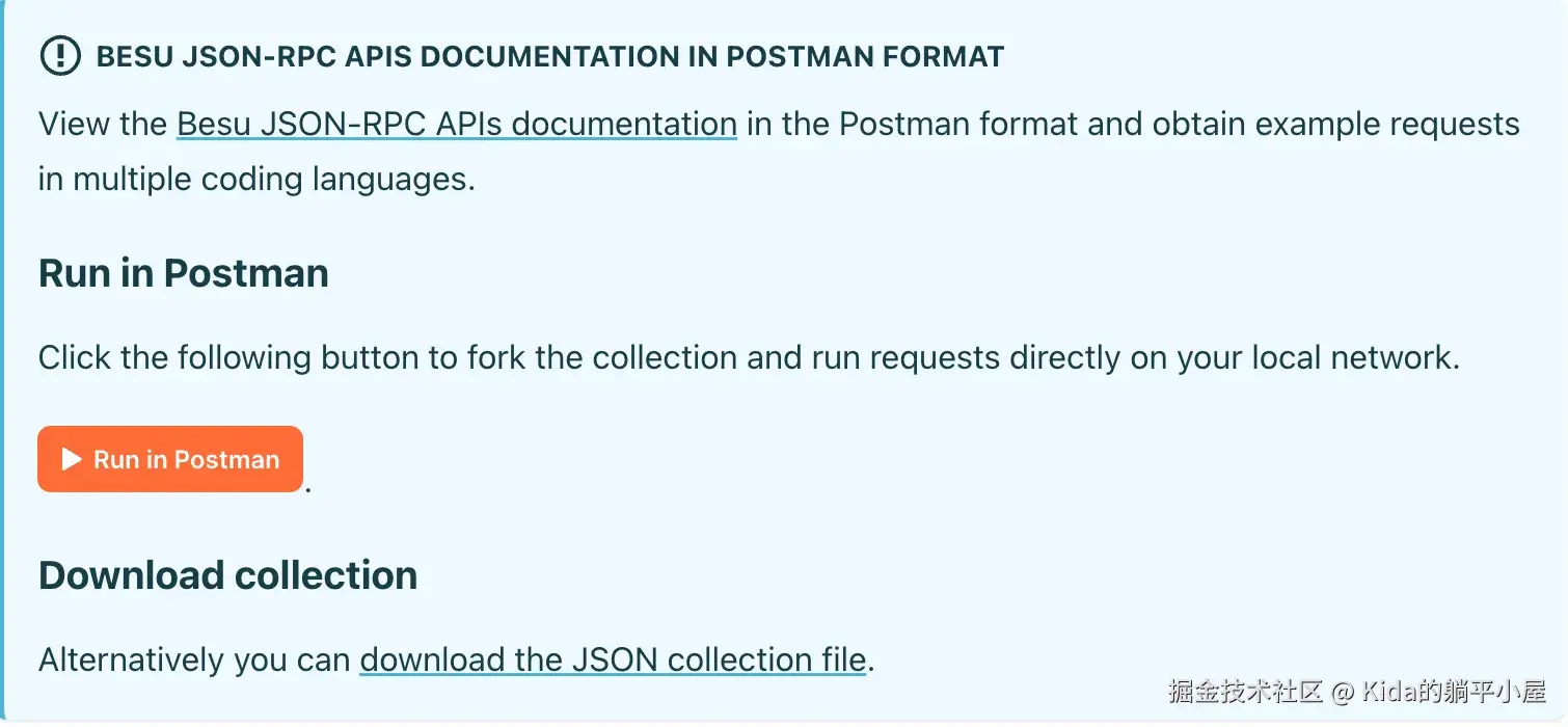 要看效果我们可以通过 Postman 或 ApiPost 等远程访问工具,调用 Besu 提供的 API 接口来看效果。由于 Besu