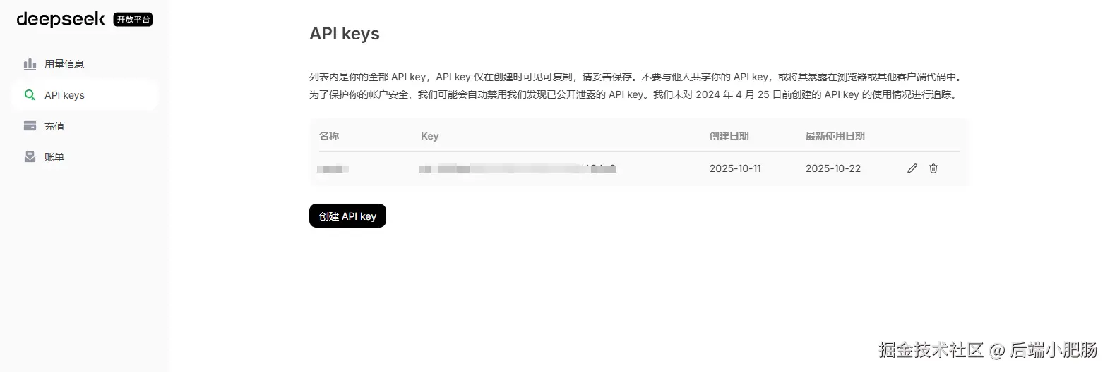 API key的申请请自行登录Deep Seek官网获取platform.deepseek.com/api_keys。