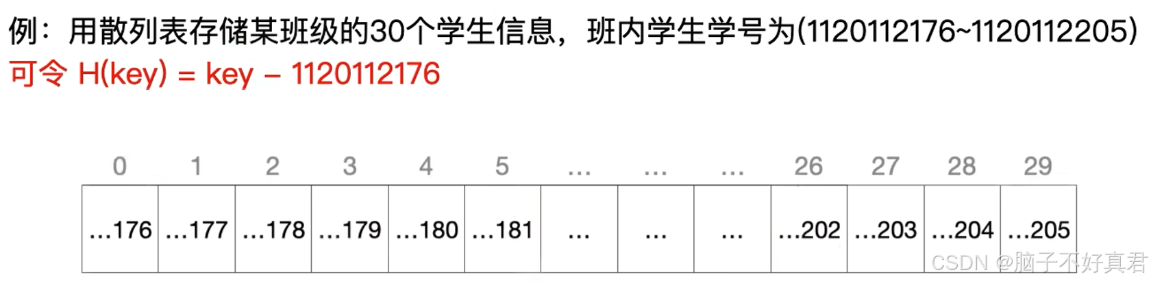 一般形式:直接定址法-H(key)= key 或 H(key)= a*key + b