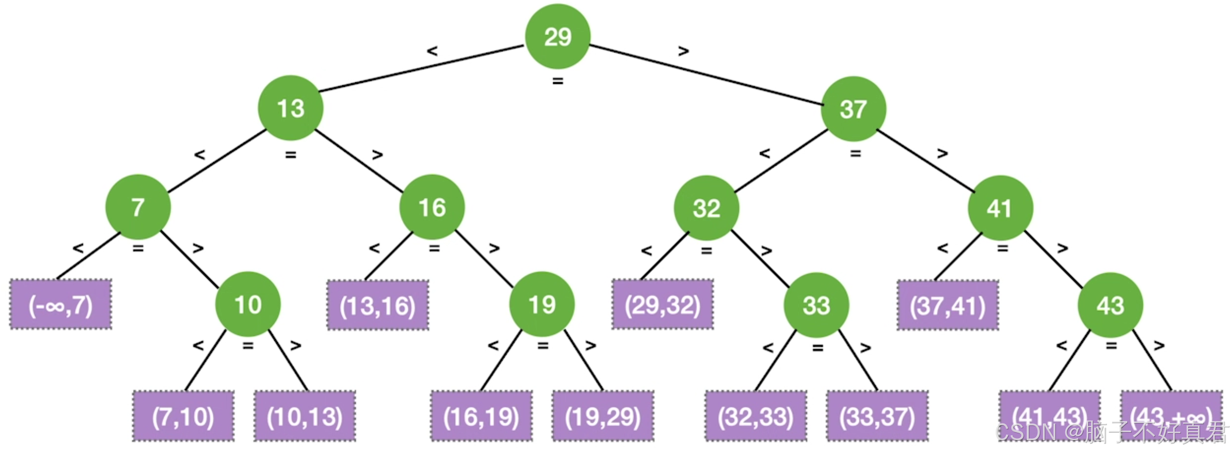 上述过程在相应的子树中递归进行,直到找到目标或遇到空指针(查找失败)为止。