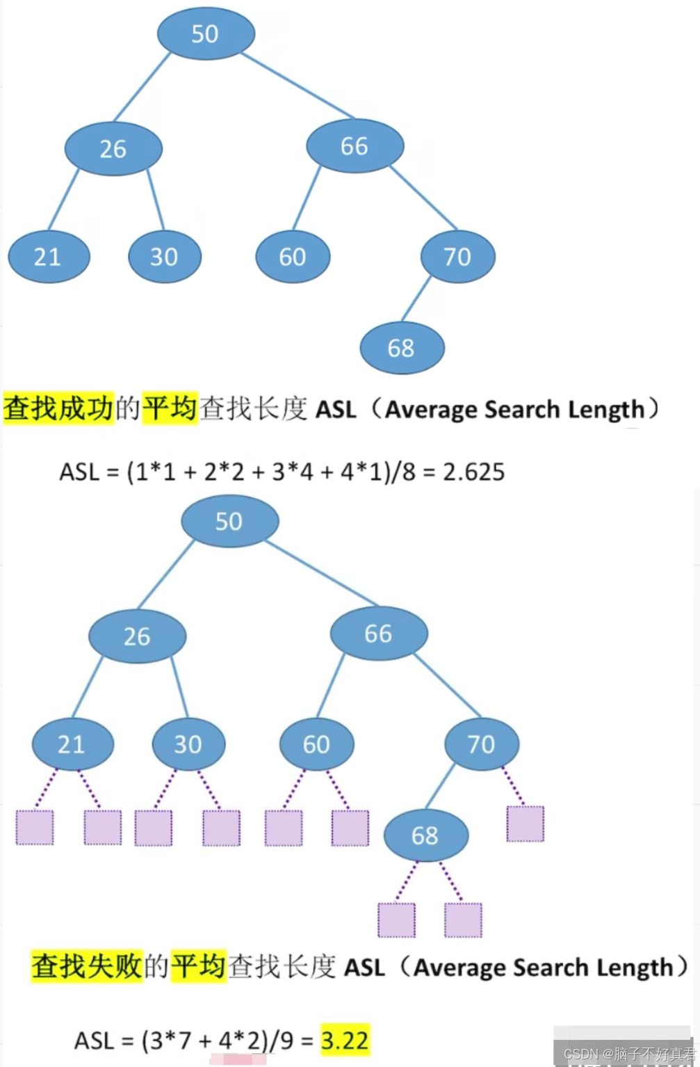 查找长度:在查找运算中,需要对比关键字的次数称为查找长度,反映了查找操作时间复杂度