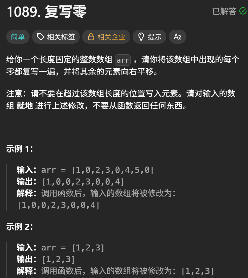 - 2、[复写零](https://leetcode.cn/problems/duplicate-zeros/description/?envType=problem-list-v2&envId=v69rxJf0)