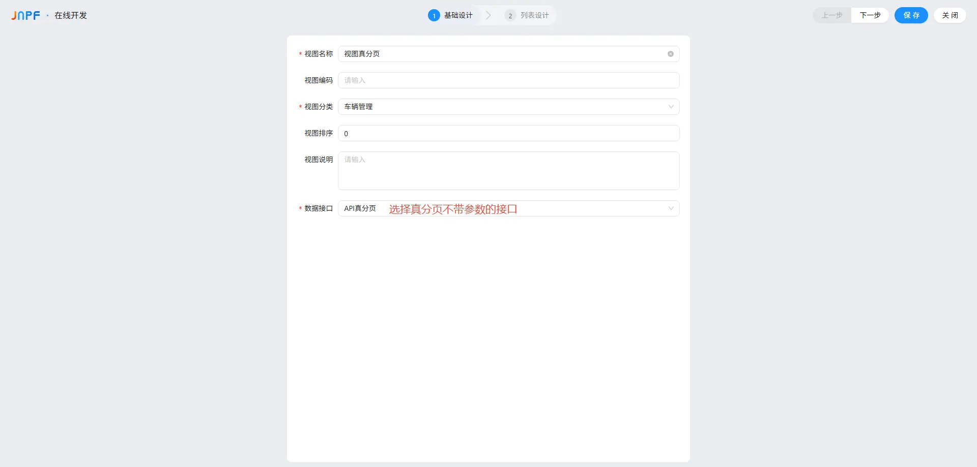 基础设计:选择 "API 真分页" 接口(接口 URL 含