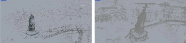 以下是初始化点云和训练迭代2万次后的点云对比 ,可以看到迭代训练后的点云信息更加丰富 ,场景细节更加多样。利用这些点云和3DGS椭球就可以构建出逼真的三维场景。