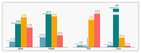 能够在与Instant-NGP相当的训练时长内,达到接近NeRF-360的重建质量,正是3DGS技术的关键优势所在,也是其在三维重建领域持续受到关注的重要原因。