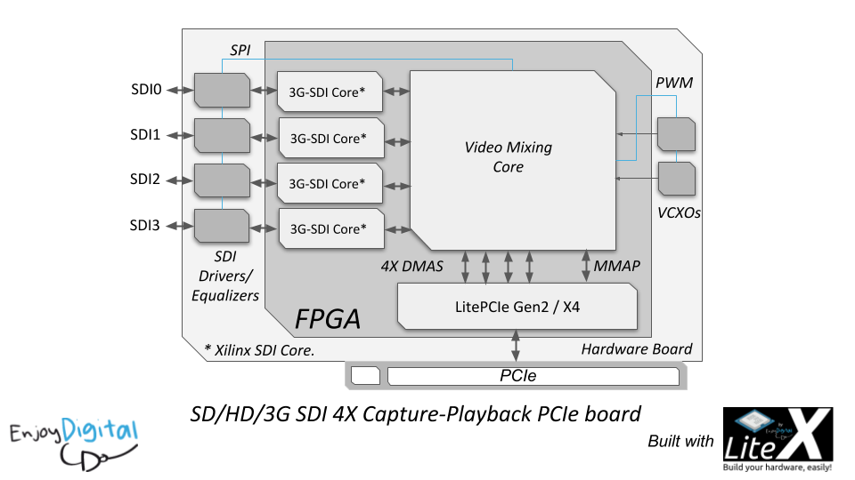 **用途:**展示 LitePCIe 如何融入整个 LiteX 生态,与 LiteDRAM / LiteEth / LiteSDCard 等协同。