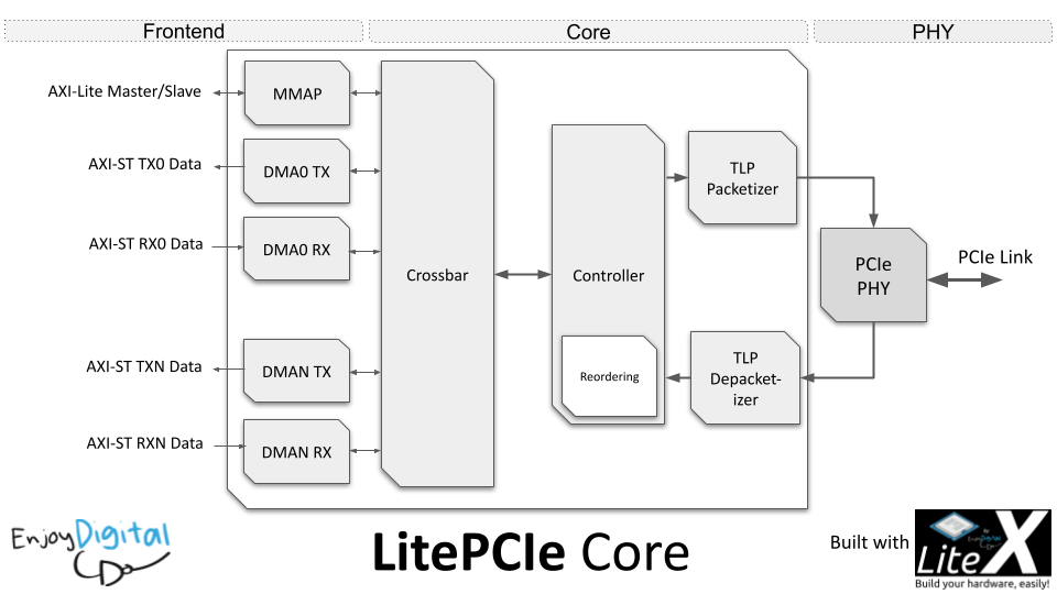 LitePCIe 是一个由 Enjoy‑Digital(https://github.com/enjoy-digital) 组织维护的"轻量级且可配置"的 PCIe 核心。它主要特点包括:
