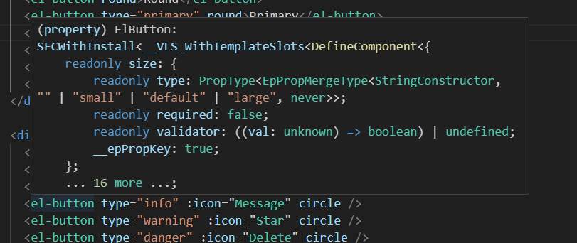 - 设置.d.ts文件后,把鼠标悬停在element的标签上就能有提示了,感觉看到提示也没有啥用