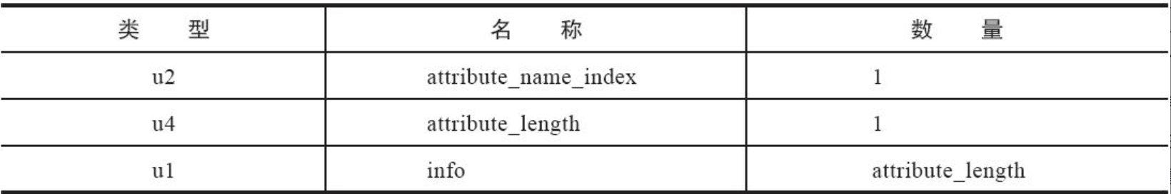 Class文件、字段表、方法表都可以携带自己的属性表集合 ,以描述某些场景专有的信息。结构如下图。