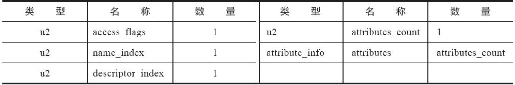 跟随access_flags标志的是两项索引值:name_index和descriptor_index。它们都是对常量池项的引用,分别代表着字段的简单名称以及字段和方法的描述符。
