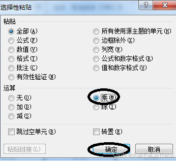 随便找个数值格子输入1,点复制。选择要转换的区域,点选择性粘贴: