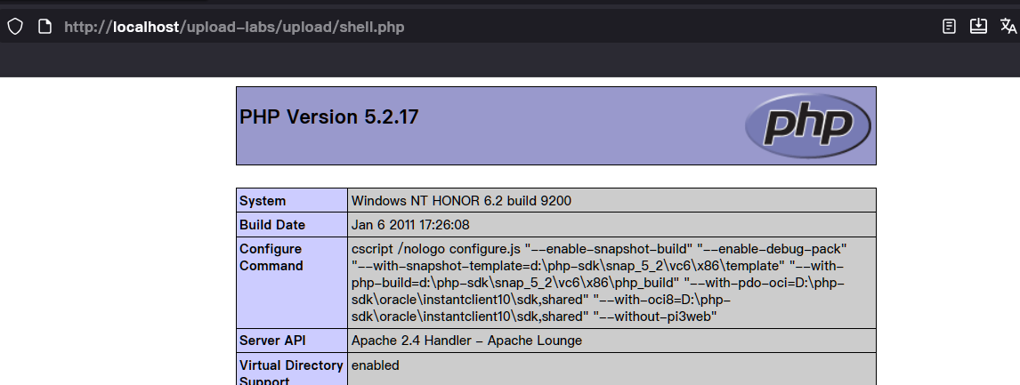 而由于这里作者也没有给予一个文件包含漏洞窗口,即意味着作者设计这关的目的不是让我们上传图片马,这里是可以利用文件包含漏洞上传图片马利用的,因为图片回显在了主页,我们可以获取到文件名,所以这里想其他方法。这里我们的目的就是上传一个"非执行文件",还要让它被当作"可执行文件"来处理。