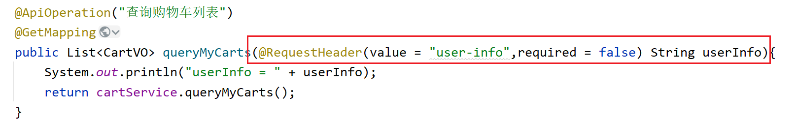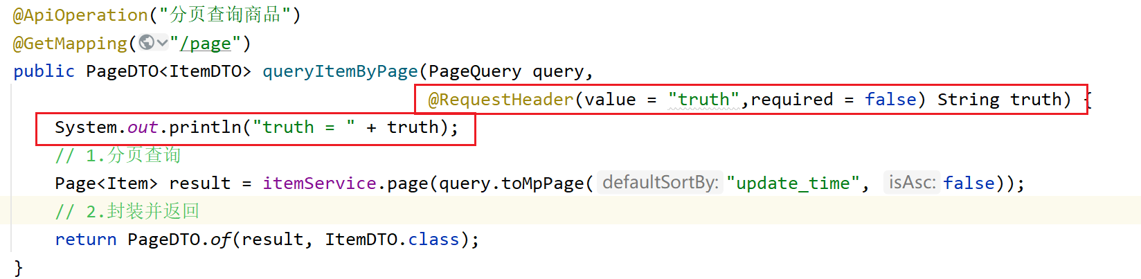 然后在item的接口处使用@RequestHeader获取这个请求头字段: