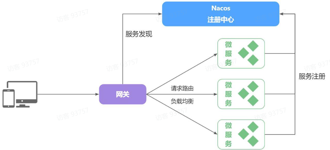 现在,微服务网关就起到同样的作用。前端请求不能直接访问微服务,而是要请求网关: