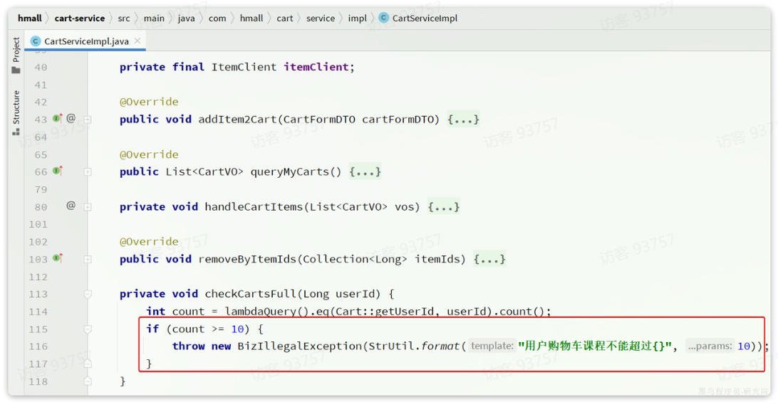 **案例:**例如购物车业务,购物车数量有一个上限,默认是10,对应代码如下: