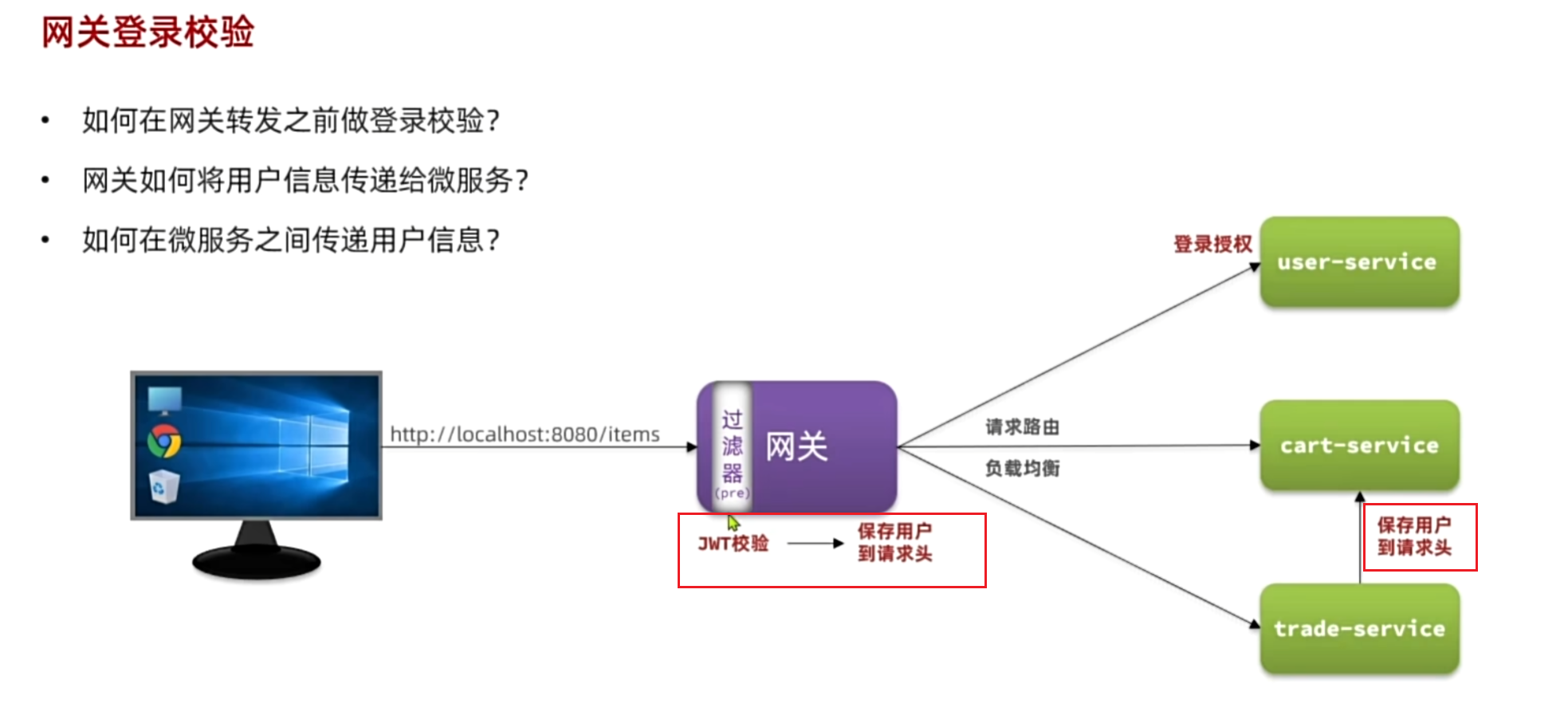 网关可以做安全控制,也就是登录身份校验,校验通过才放行