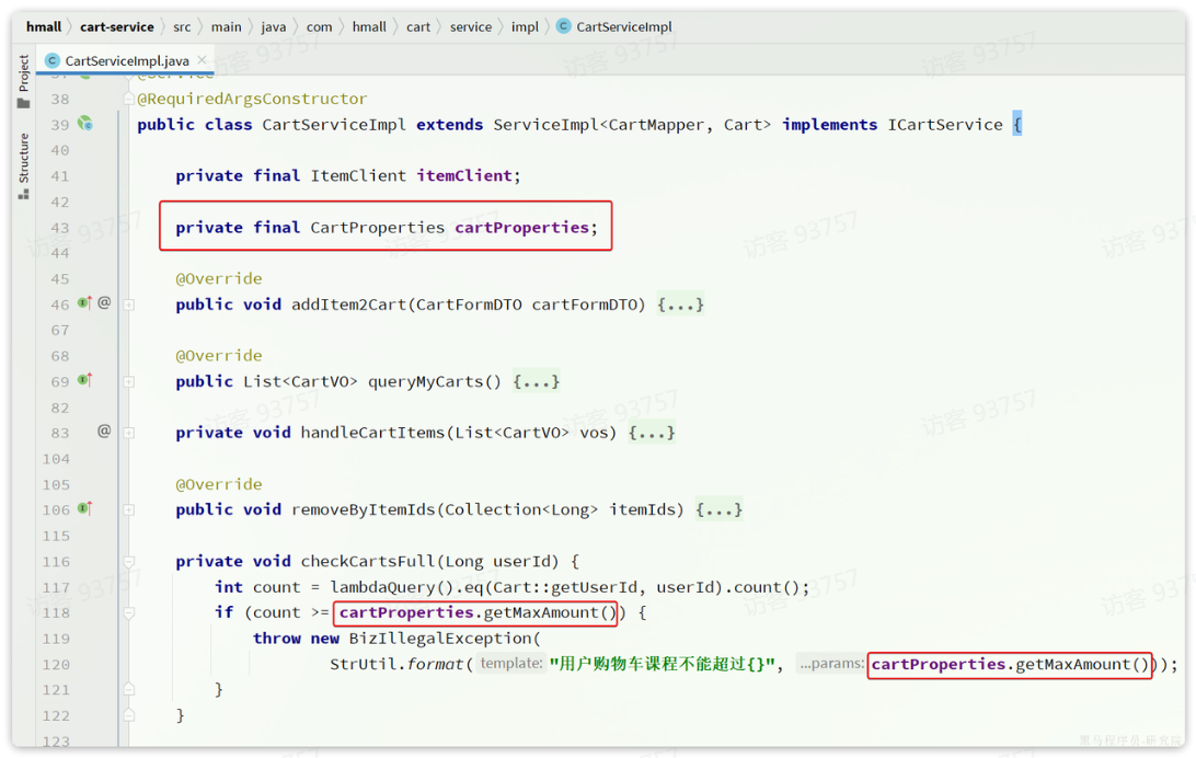 现在这里购物车是写死的固定值,我们应该将其配置在配置文件中,方便后期修改。