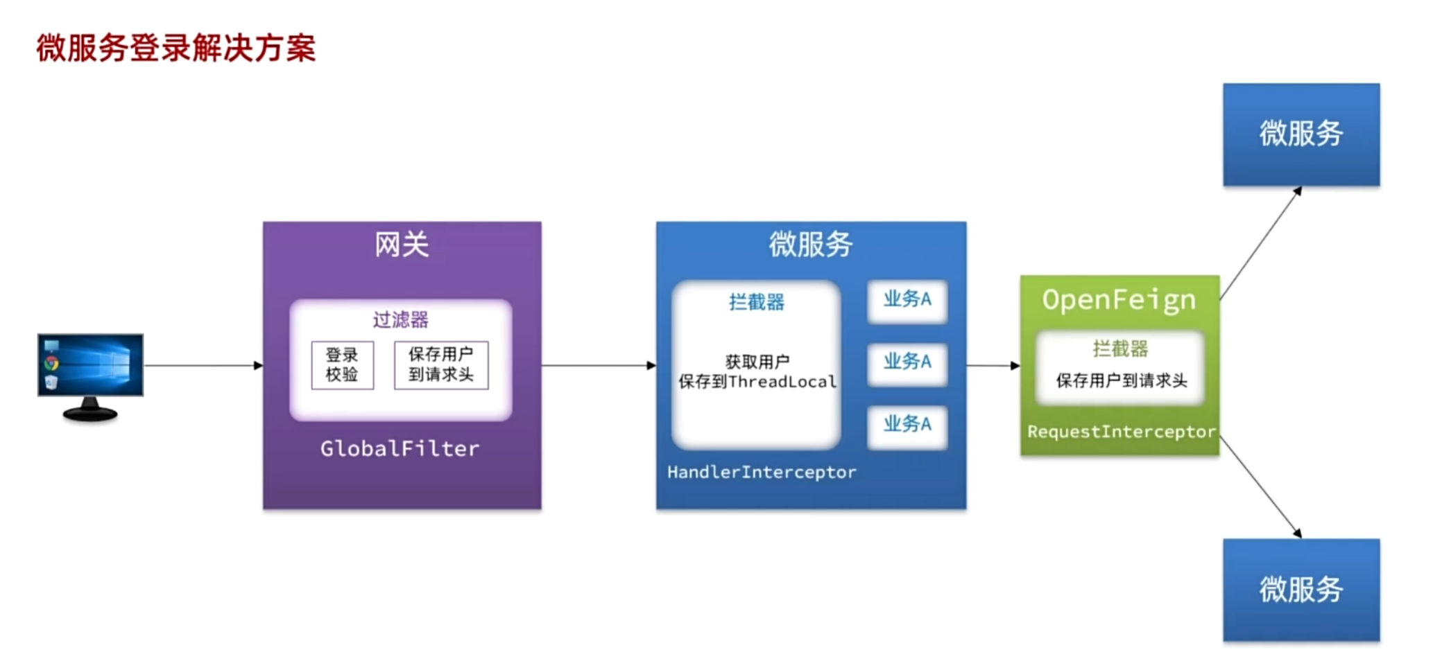 单体架构时只需要完成一次用户登录、身份校验,就可以在所有业务中获取到用户信息。而微服务拆分后,每个微服务都独立部署,这就存在一些问题:
