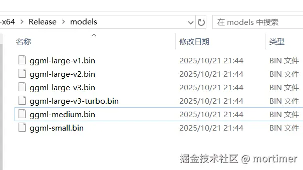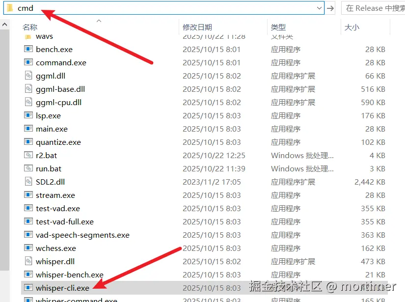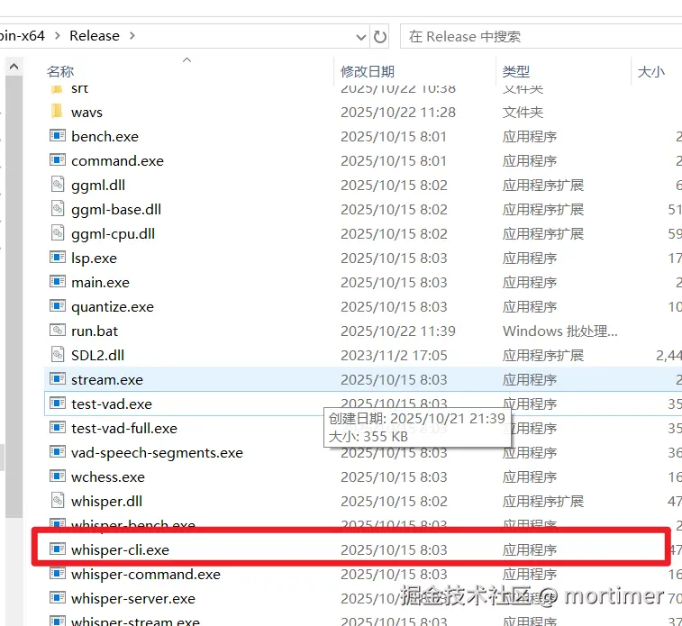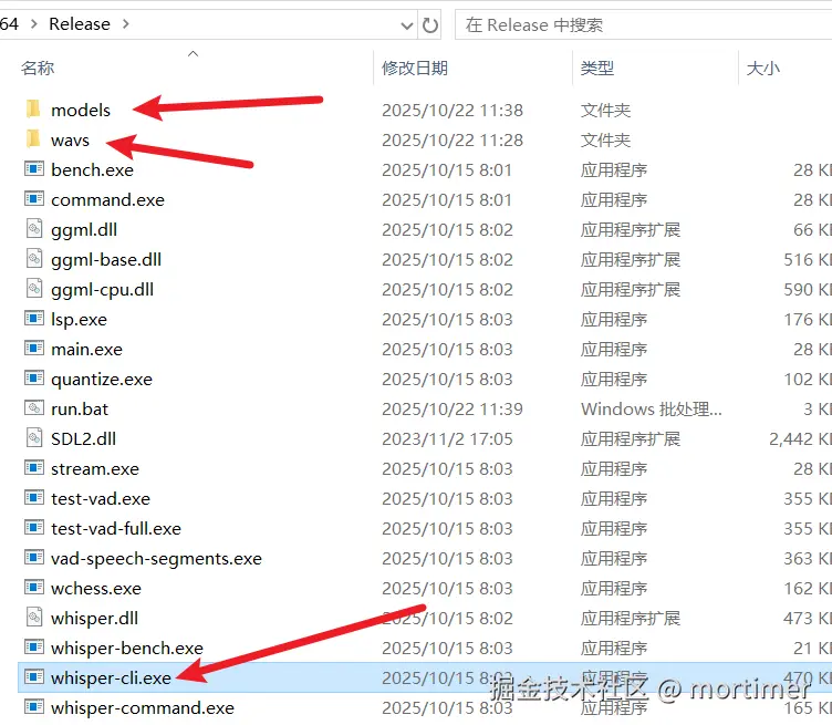解压后,进入文件夹,确保你能看到一个名为 whisper-cli.exe