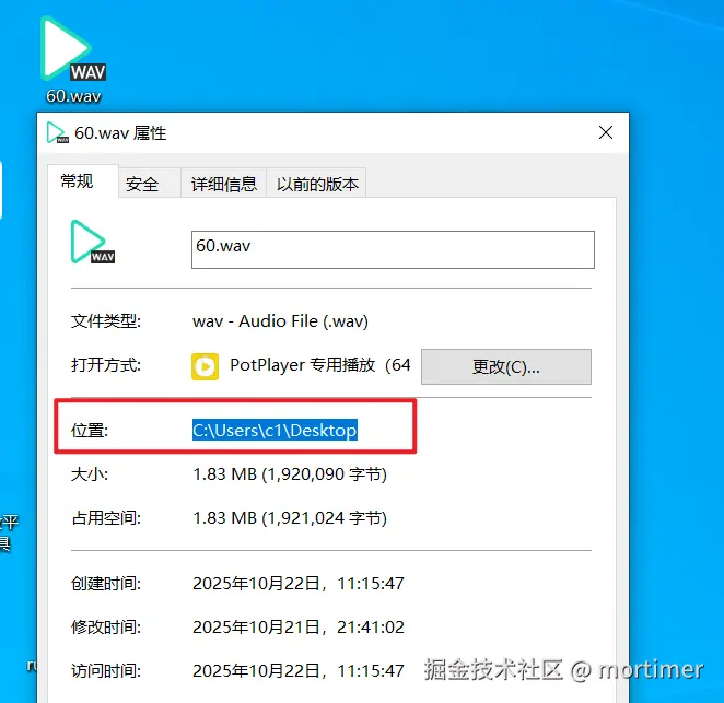 在桌面,完整路径是C:\Users\c1\Desktop\60.wav