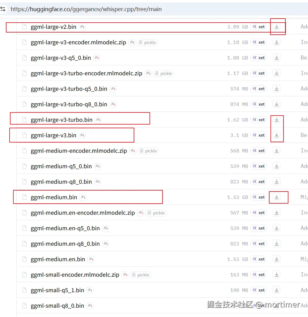选择一个你需要的模型下载,然后将下载好的 .bin